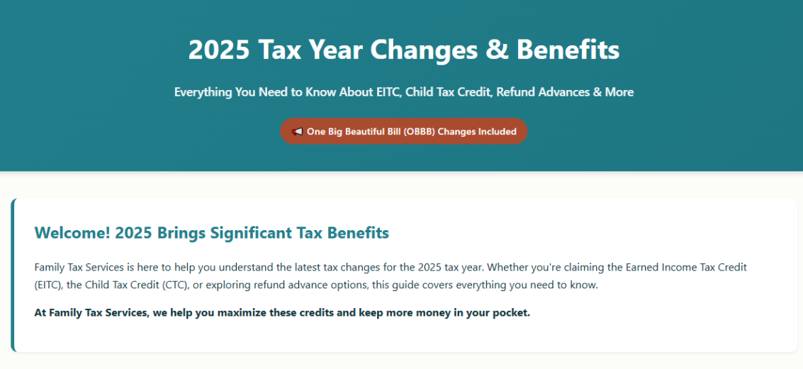 Family Tax Services ~ 2025 Tax Change Updates